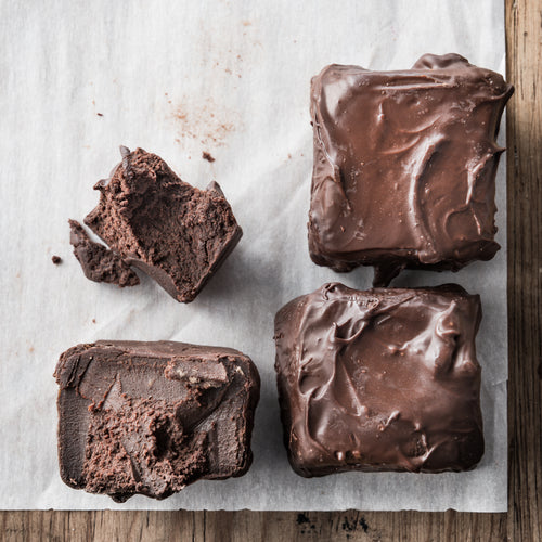 Not in the hard English style, our toffees are soft and often have savory element. They start with French butter and cane sugar cooked to a golden soft caramel. We then add the flavor profiles that can range from popcorn to even mushroom or dark chocolate at which time gives them a slight crystalized texture. The soft butter toffees are topped with a thin dark chocolate shell and cut into 2” cubes and the soft chocolate butter toffees are rolled in a very thin layer of dark chocolate. 3 each 2” cubes per box.
